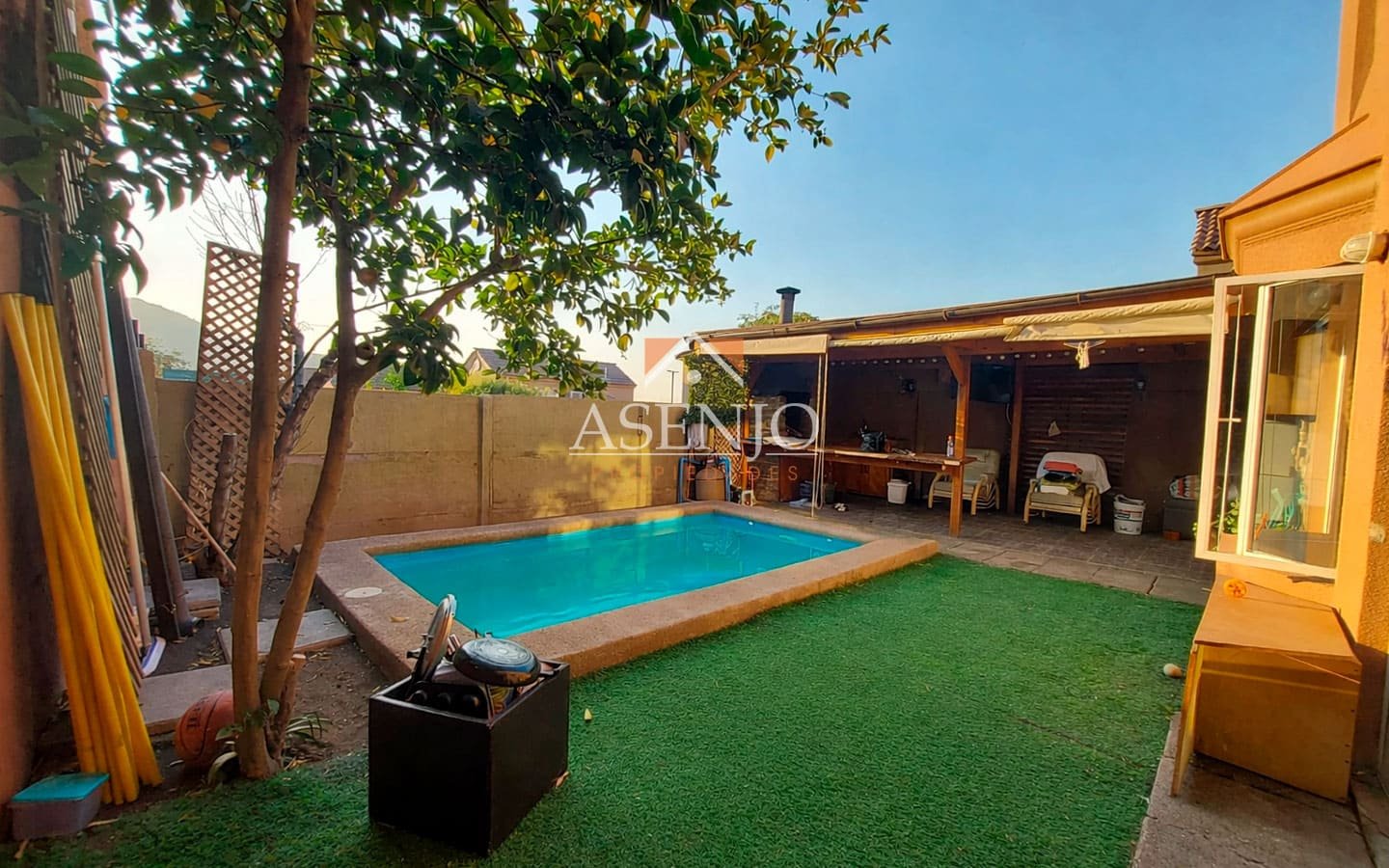 Asenjo Propiedades!! Arrienda Linda Casa en condominio, sector Valle Lo Campino de Quilicura, zona residencial a pasos de colegio, supermercados áreas verdes con acceso por autopista a todo el gran Santiago. Primer piso: Hall de acceso, amplio living comedor separados con salida a terraza muy iluminada, baño de visita, cocina amoblada y equipada con espacio para comedor de diario, logia cerrada y techada. Amplio dormitorio principal en Suite. Segundo piso: Dos amplios dormitorios muy iluminados y baño completo y sala de estar. El exterior ofrece una terraza con pérgola, piscina y quincho techado, ideal para disfrutar en familia y realizar reuniones durante todo el año. Altillo para bodega. Queda; lámparas, cortinas Valor arriendo considera el gasto común Estacionamiento para 1 vehículo Metrajes aproximados!