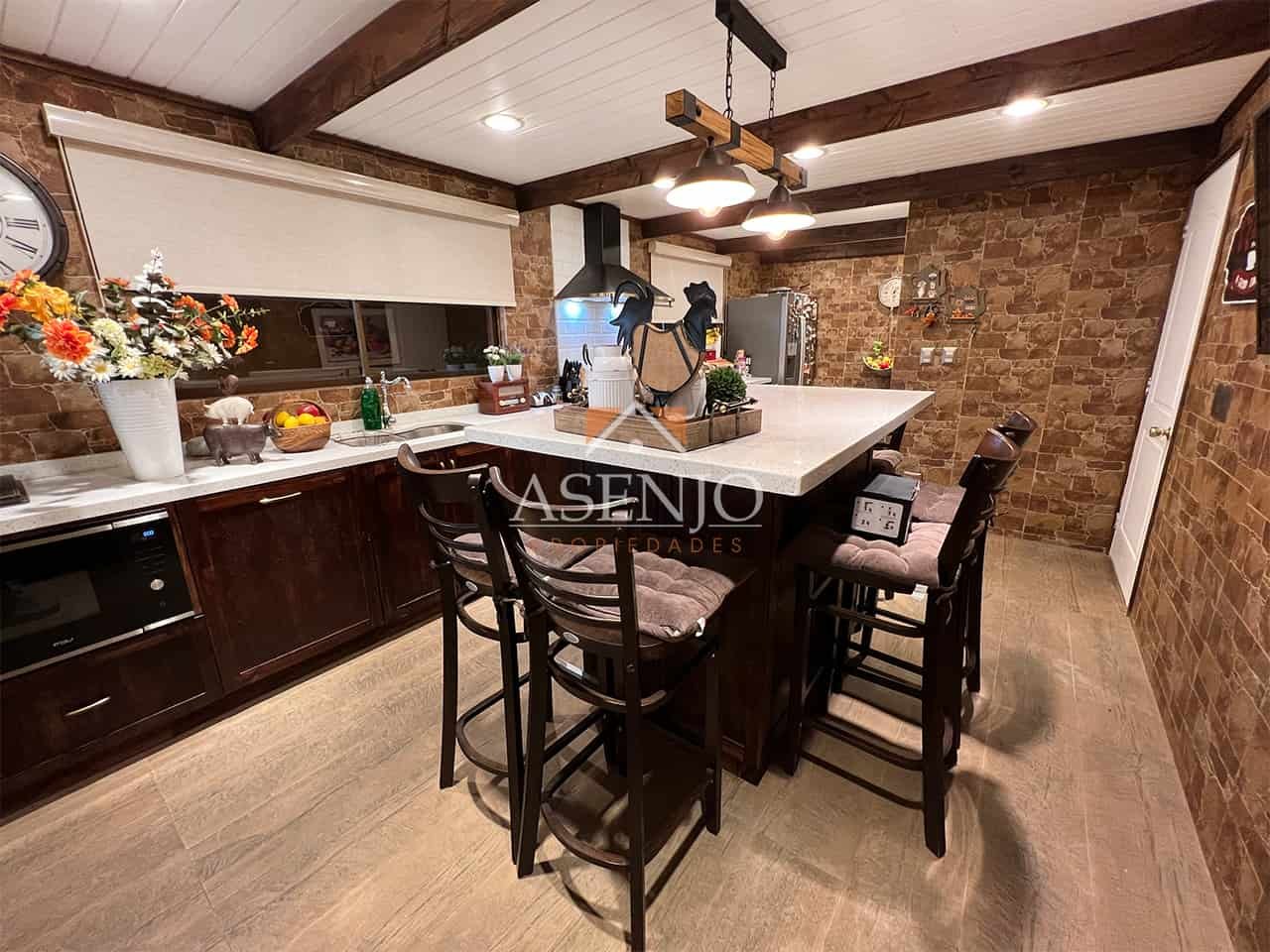 ASENJO PROPIEDADES vende espectacular casa estilo chileno de dos pisos, aislada, ubicada en un exclusivo condominio de Huechuraba, con seguridad y acceso controlado las 24 horas, en un entorno residencial tranquilo y de alta plusvalía.